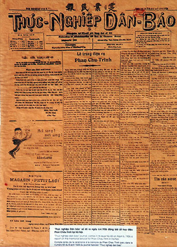 Thực nghiệp dân báo, số 65 ra ngày 6-4-1926 đăng bài Lễ truy điệu Phan Châu Trinh tại Hà Nội.