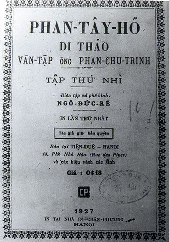 Sách Phan Tây Hồ Di thảo xuất bản tại Hà Nội, năm 1927..